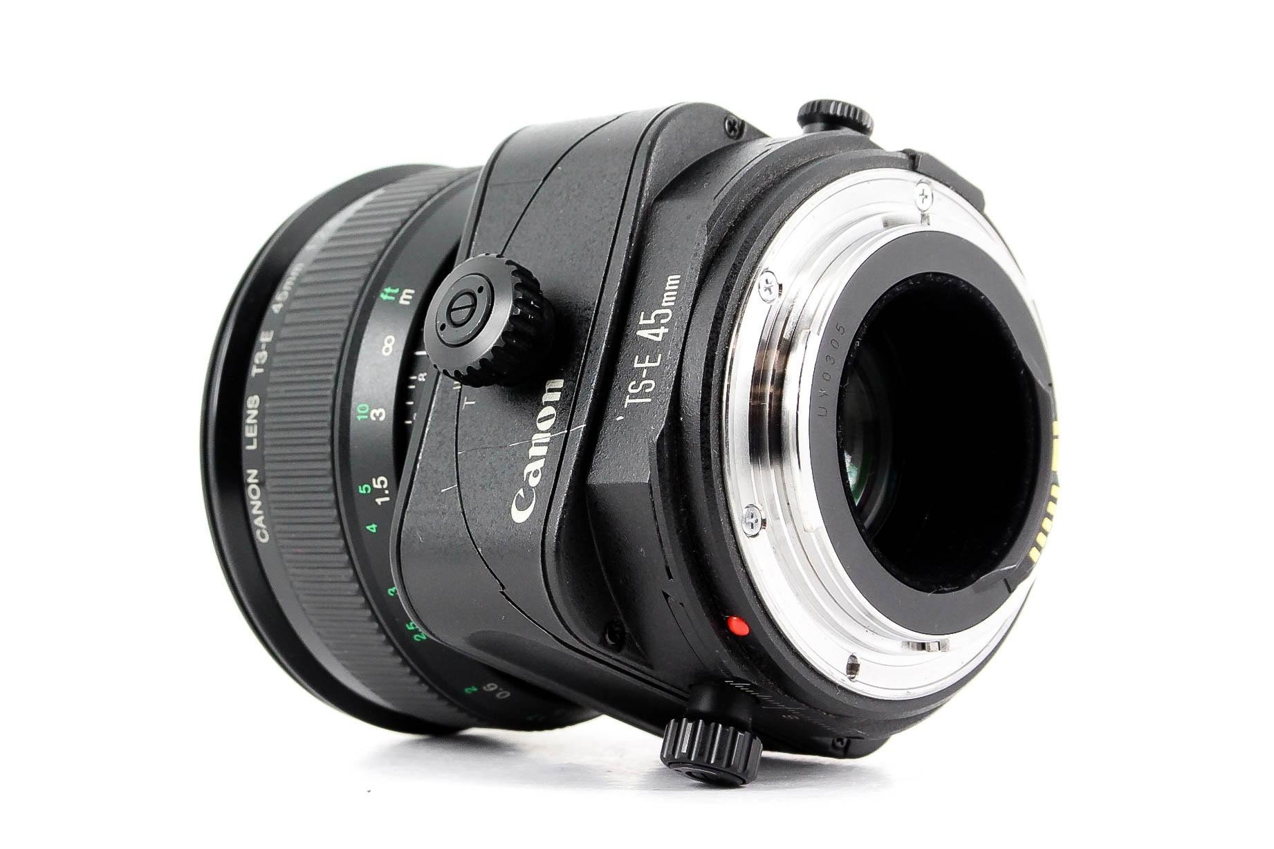 The Canon TS-E 45mm f/2.8 Tilt-Shift lens is in great condition fully working with no faults. It mounts smoothly onto the camera and communicates correctly. The focusing ring is smooth and easy to operate. (There could be some marks or small scratches on the elements or particles of dust inside, but it does not affect optical performance)