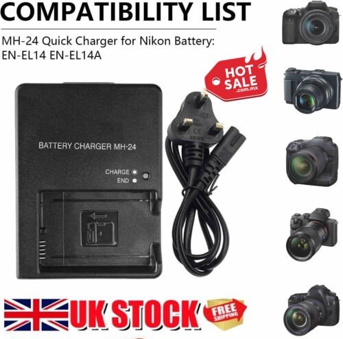 MH-24 Fast Charger – Nikon EN-EL14a D5100 D5200 D5500 D5600 COOLPIX 7700 7800 Df