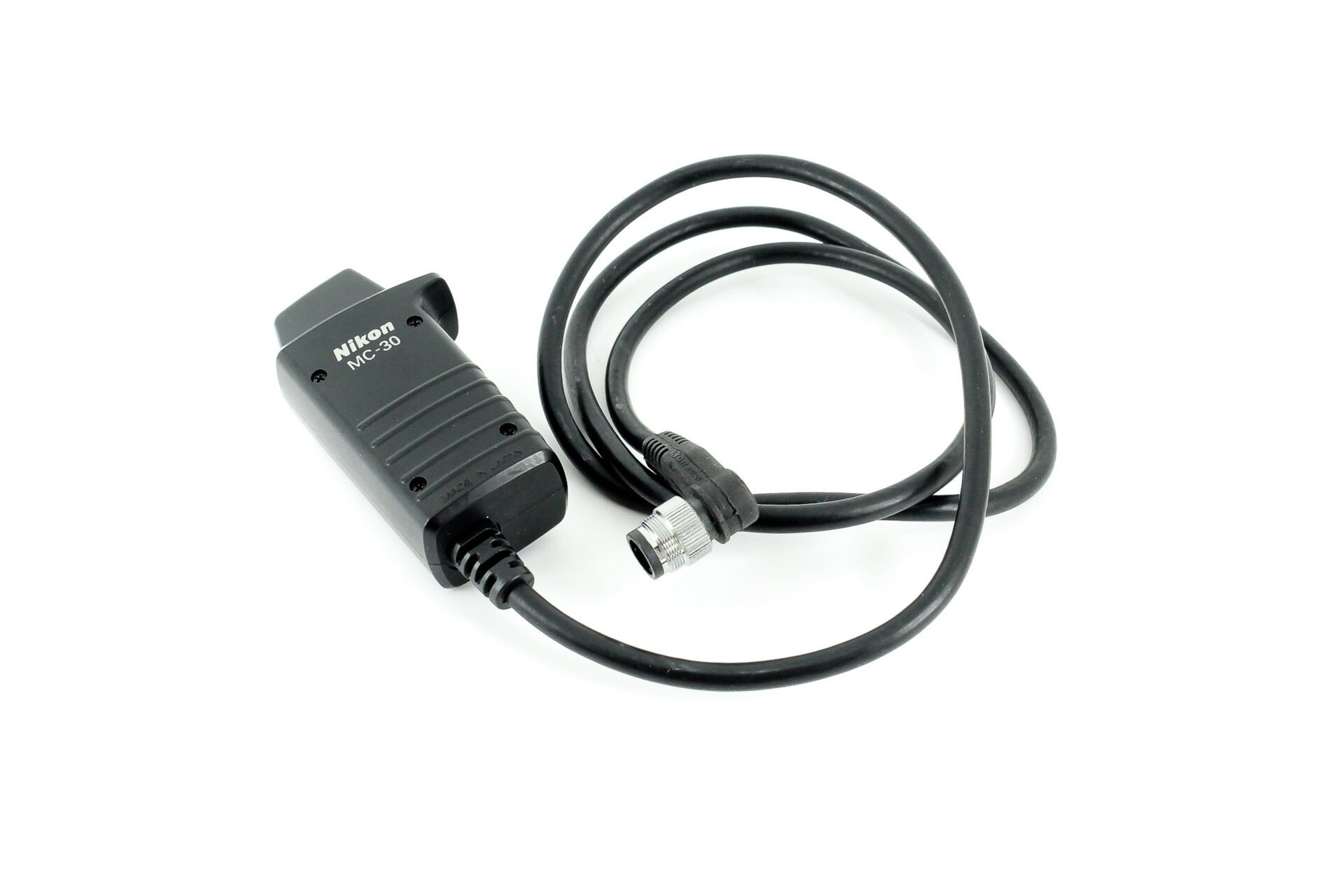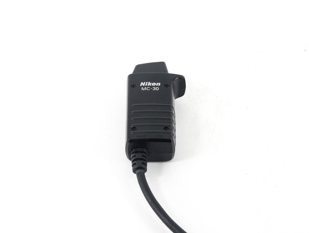 This Nikon MC-30 Remote Cord is in good condition and fully working order. (There could be small scratches on the surface, but it does not affect functionality.) The Nikon MC-30 Remote Cord Trigger Release is a standard (10-pin) remote release with a 2.5' (76.2cm) cord for "10-pin" cameras. It features a trigger-lock function. This device is compatible with Nikon D3, D3X, D3S, D300S, D700, F100, F5, F6, D1 & D2 Series, D200, D300, D700 and D100 cameras with the MB-D100 Battery Pack attached.